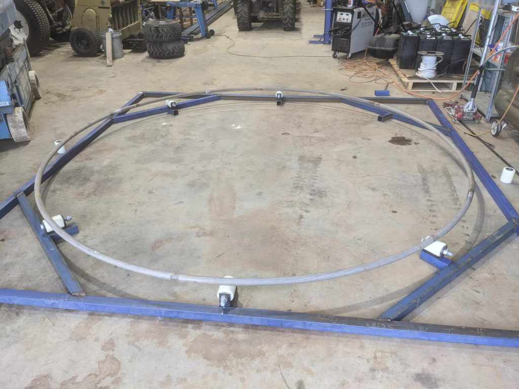 If I were to do this again I’d get some angle steel rolled in two pieces by a professional, weld them, then run the chain tucked up in the corner of the steel for accuracy. - The 300 kg rollers: They were probably overkill given their size, but not the worst idea as the shape of the ring did need more tolerance in the end.