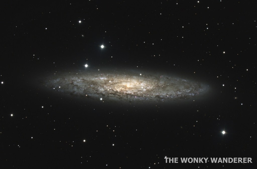 Discovered by Caroline Herschel in 1783, the Sculptor Galaxy is an excellent example of an intermediate spiral galaxy and is well defined by its intense dust lanes. On top of this it’s also known as a “starburst galaxy”, meaning that the galaxy is undergoing an intense period of star formation.