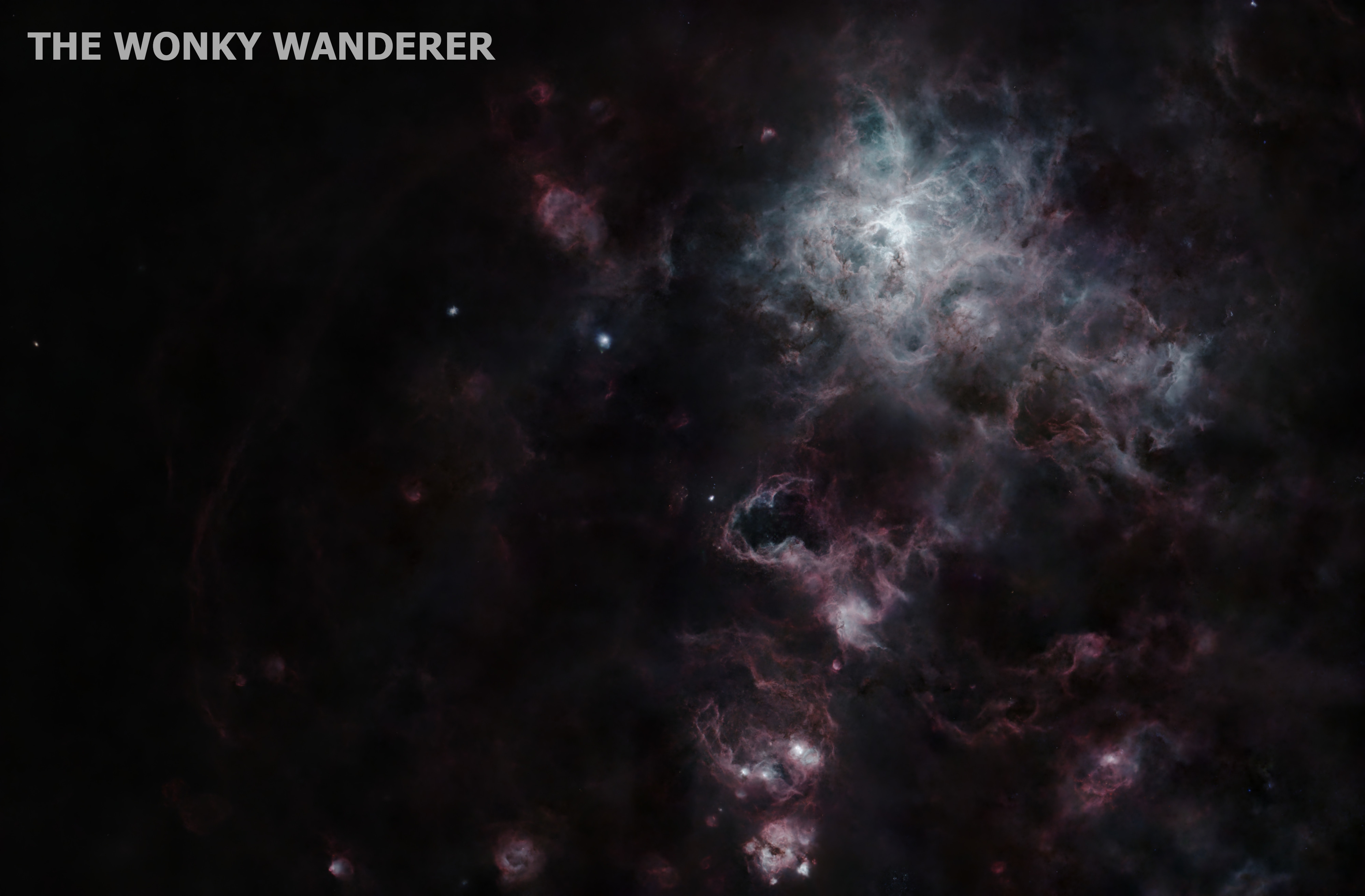 The Tarantula Nebula is one of the largest ionised hydrogen regions in our Local Group, and it’s so bright that if it were as close as the Orion Nebula is it would cast shadows at night! Named for the cloud structures that resemble a tarantula’s lair, it’s an active star forming region in our neighbour dwarf galaxy the Large Magellenic Cloud.